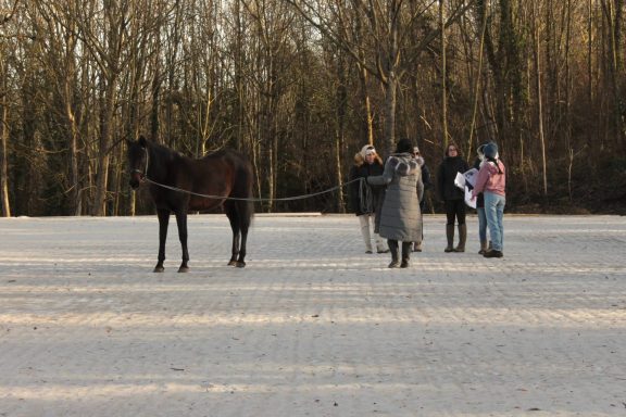 C'est dans une ambiance conviviale que le stage autour du massage équin s'est déroulé le 11 janvier dernier. Eloïse Thomasson nous a présenté une biomécanique complète du cheval et les différentes chaînes musculaires. Après un picnic partagé les participants se sont retrouvés au haras pour découvrir quelques clés de lecture de cette biomécanique sur des équidés en mouvement. Place à la pratique effective où Eloïse nous a commenté un massage puis a permis à chaque participant de découvrir quelques techniques à appliquer quotidiennement sur nos équidés.